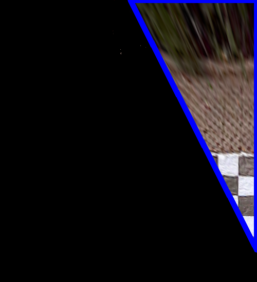 3. front, left 图像各自位于重叠区域外部的边界检测出来,这一步是通过先调用 cv2.findContours 求出最外围的边界,再用 cv2.approxPolyDP 获得逼近的多边形轮廓: